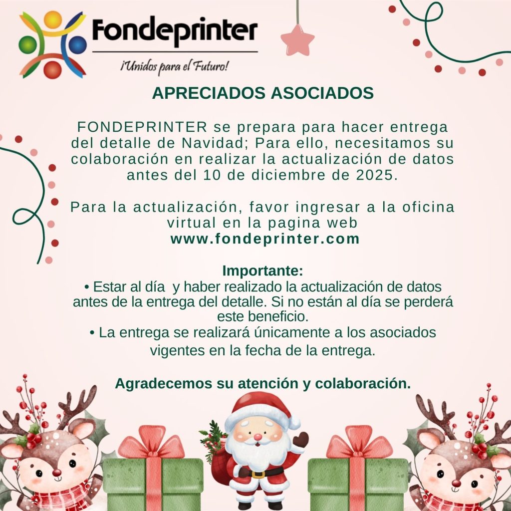 El Fondo de Empleados de Printer Colombiana FONDEPRINTER es una empresa asociativa, sin ánimo de lucro, vigilada por la Superintendencia de la Economía Solidaria, legalmente constituida con personería jurídica No. 0834 del 27 de mayo de 1986 otorgada por Dan social.